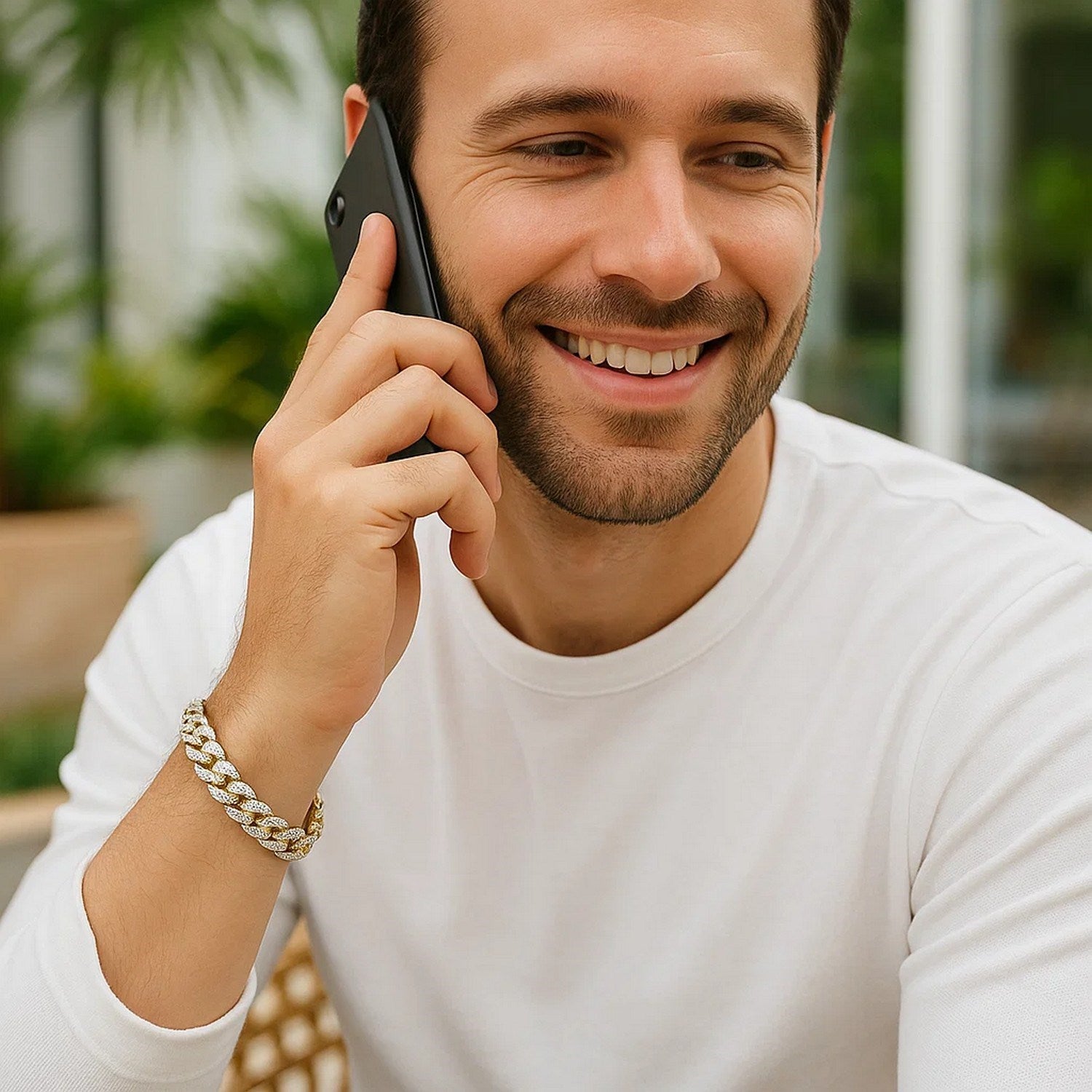 سوار بتصميم سلسلة من الذهب الأصفر عيار 14 قيراطًا مع قطع ماسية (8.80 مم) -